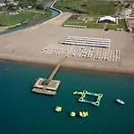 Residents are offered a fitness centre and a Turkish bath for a surcharge. Located in the entertainment area of Antalya, this accommodation features an aqua park, water slides, and spa therapy. Guests can enjoy beach volleyball and lawn tennis, or visit a Jacuzzi and massage facilities. There is a business centre available for corporate travellers.